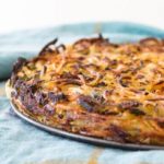 Move to the top rack and broil for 2 minutes. Remove and flip the rosti out. Turn over and slide back into the cake pan. Slide back under the broiler for another minute. This can also be done with an oven-safe pan.