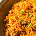 Using a spiralizer, use the smallest blade for slender noodles. For thicker noodles, use the blade with larger holes. While the onion caramelizes, spiralize the sweet potatoes.